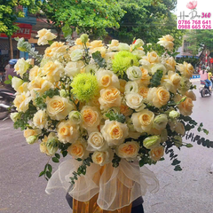 Bình hoa chúc mừng là món quà ý nghĩa, thể hiện lời chúc tốt đẹp và sự quan tâm sâu sắc. Với tông màu vàng kem nhẹ nhàng kết hợp xanh tươi mát, mẫu bình hoa này mang đến cảm giác sang trọng, tươi sáng và tràn đầy năng lượng tích cực.