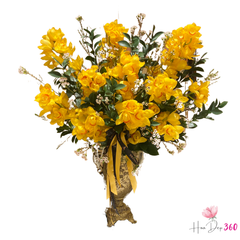 Bình địa lan hoa "Vàng Son Thịnh Vượng" là sự kết hợp hài hòa giữa vẻ đẹp thanh lịch của 10 cành địa lan, sự tươi mát của lá chanh và sắc vàng rực rỡ của thanh liễu. Sản phẩm này không chỉ mang đến một không gian sang trọng và quý phái mà còn biểu trưng cho sự thịnh vượng và may mắn. Đây là lựa chọn hoàn hảo để trang trí trong nhà, văn phòng hoặc làm quà tặng trong những dịp đặc biệt, góp phần tạo nên bầu không khí an lành và phú quý.