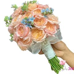 Bó hoa cưới "Juliet Thanh Xuân" mang đến vẻ đẹp ngọt ngào và tươi mới với sự kết hợp của những bông hoa Juliet sắc cam nhạt tinh tế, thể hiện tình yêu lãng mạn và sự dịu dàng. Hoa Juliet, với cánh hoa mỏng manh và sắc cam thanh lịch, mang đến cảm giác quý phái. Sao xanh tạo nên điểm nhấn tươi mát, giúp bó hoa thêm phần sinh động và tràn đầy sức sống. Đây là bó hoa hoàn hảo để tặng trong các dịp quan trọng như sinh nhật, kỷ niệm, hoặc để thể hiện tình cảm yêu thương.