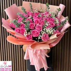 Một bó hoa hồng hồng pastel phối baby trắng không chỉ đẹp dịu dàng mà còn mang ý nghĩa sâu sắc về tình yêu trong sáng và sự ngọt ngào tinh tế. Thiết kế sang trọng, phối lá eucalyptus xanh mát, giấy gói hồng pastel đồng điệu, tạo nên món quà vừa thanh lịch vừa lãng mạn.