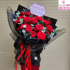 Bó hoa hồng đỏ rực rỡ được thiết kế sang trọng với lớp giấy gói đen huyền bí và ruy băng đỏ nổi bật. Hoa hồng đỏ từ lâu đã được coi là biểu tượng của tình yêu nồng cháy, sự ngưỡng mộ và lòng biết ơn sâu sắc. Với thiết kế tinh tế, hiện đại, đây là món quà hoàn hảo dành tặng người yêu, bạn đời, bạn bè hoặc đối tác trong các dịp đặc biệt.
