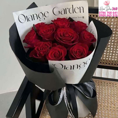 Bó hoa được thiết kế từ những đoá hồng đỏ rực rỡ – biểu tượng của tình yêu mãnh liệt và nồng nàn, được gói trong giấy đen – trắng đối lập đầy tinh tế, kèm ruy băng đen sang trọng. Đây là lựa chọn hoàn hảo cho những ai muốn gửi gắm tình cảm chân thành, lãng mạn nhưng không kém phần đẳng cấp.
