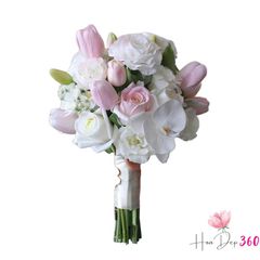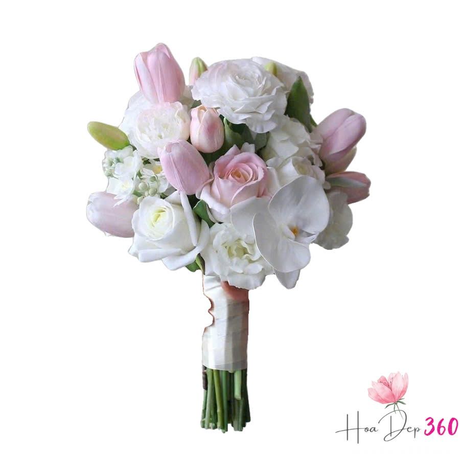 Đám Cưới Nhá là một sự kết hợp tuyệt vời giữa vẻ đẹp tinh khiết của hoa lan hồ điệp, sự duyên dáng của tulip hồng, nét thanh lịch từ hoa hồng trắng, và sự mềm mại của lan tường trắng. Tất cả những bông hoa này được kết hợp tinh tế, tạo nên một bố cục hoàn hảo, mang thông điệp về sự tinh khiết, thanh lịch và trang nhã.