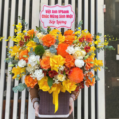 Nếu bạn đang tìm kiếm một hộp hoa tươi rực rỡ, nổi bật và sang trọng để làm quà tặng, thì hộp hoa cam – vàng – trắng này chính là sự lựa chọn hoàn hảo. Nó không chỉ giúp bạn gửi gắm lời chúc tốt đẹp mà còn góp phần tạo nên ấn tượng sâu sắc trong lòng người nhận.