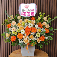 Giỏ hoa hồng cam phối hồng kem là lựa chọn hoàn hảo để gửi gắm yêu thương, lời chúc ý nghĩa và mang đến nụ cười cho người nhận.