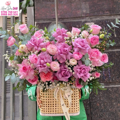 Giỏ hoa hồng tím – hồng phấn này là lựa chọn tuyệt vời cho nhiều dịp quan trọng: sinh nhật, lễ kỷ niệm, ngày cưới, lễ tình nhân, tân gia hay làm quà tặng chúc mừng thành công. Với thiết kế tinh tế trong chiếc giỏ mây đan thanh lịch, giỏ hoa vừa mang nét mộc mạc gần gũi, vừa toát lên sự đẳng cấp, sang trọng.