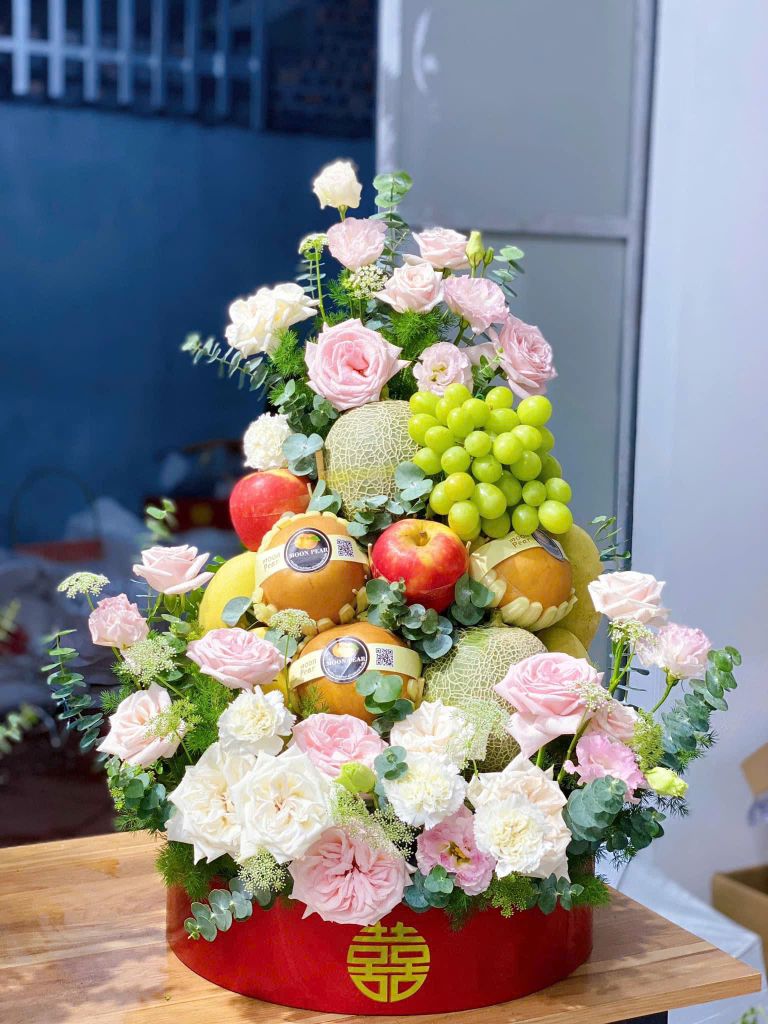 - Phong cách truyền thống xen lẫn hiện đại: Sự kết hợp giữa hoa tươi và trái cây cao cấp trong giỏ hoa quả ngày cưới tạo nên sự hài hòa giữa nét truyền thống và hiện đại, phù hợp cho các buổi lễ cưới trang trọng.