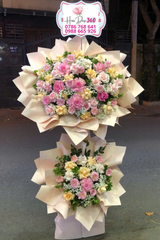 Kệ hoa khai trương 2 tầng với gam màu pastel nhẹ nhàng, trang nhã: