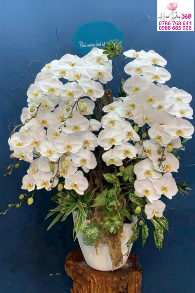 Lan hồ điệp trắng tượng trưng cho sự tinh khiết, khởi đầu mới và thành công viên mãn, rất thích hợp làm quà khai trương, chúc mừng hoặc trang trí không gian cao cấp.