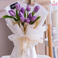 Hoa chủ đạo: Tulip tím nhẹ nhàng, nụ căng dáng thẳng.