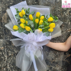 Hoa chủ đạo: Tulip vàng tươi nụ đều, form tròn đẹp.