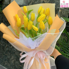 Hoa chính: Tulip vàng tươi, dáng nụ thon gọn, tràn đầy sức sống.